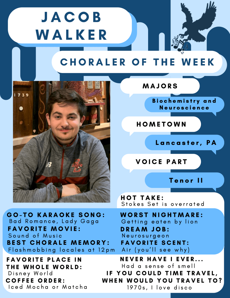 AnnouncementsChoraler of the Week! 10/06/202210/06/2022 Christian Landry Our first Choraler of the Week for the 2022-23 academic year is… Jacob Walker! Get to know Jacob below. Poster created by Bonnie Stewart! Like Loading... Published by Christian Landry View all posts by Christian Landry